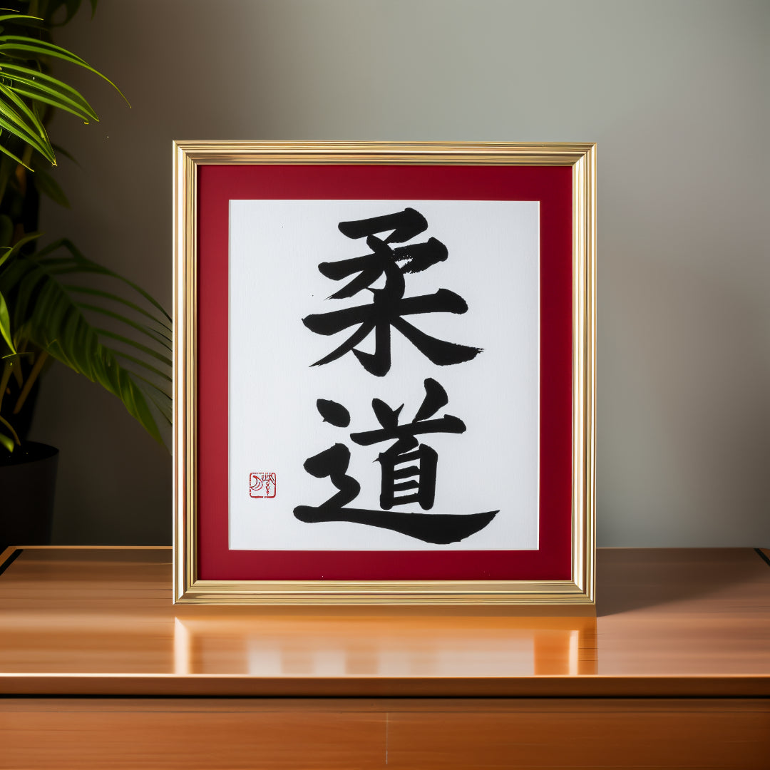 This framed calligraphy artwork features the proud phrase 柔道 (Judo). It reflects the core principles of Judo — mutual respect, discipline, and the unity of body and will. More than a martial art, Judo is a way of life that teaches balance, perseverance, and the value of continuous self-improvement.