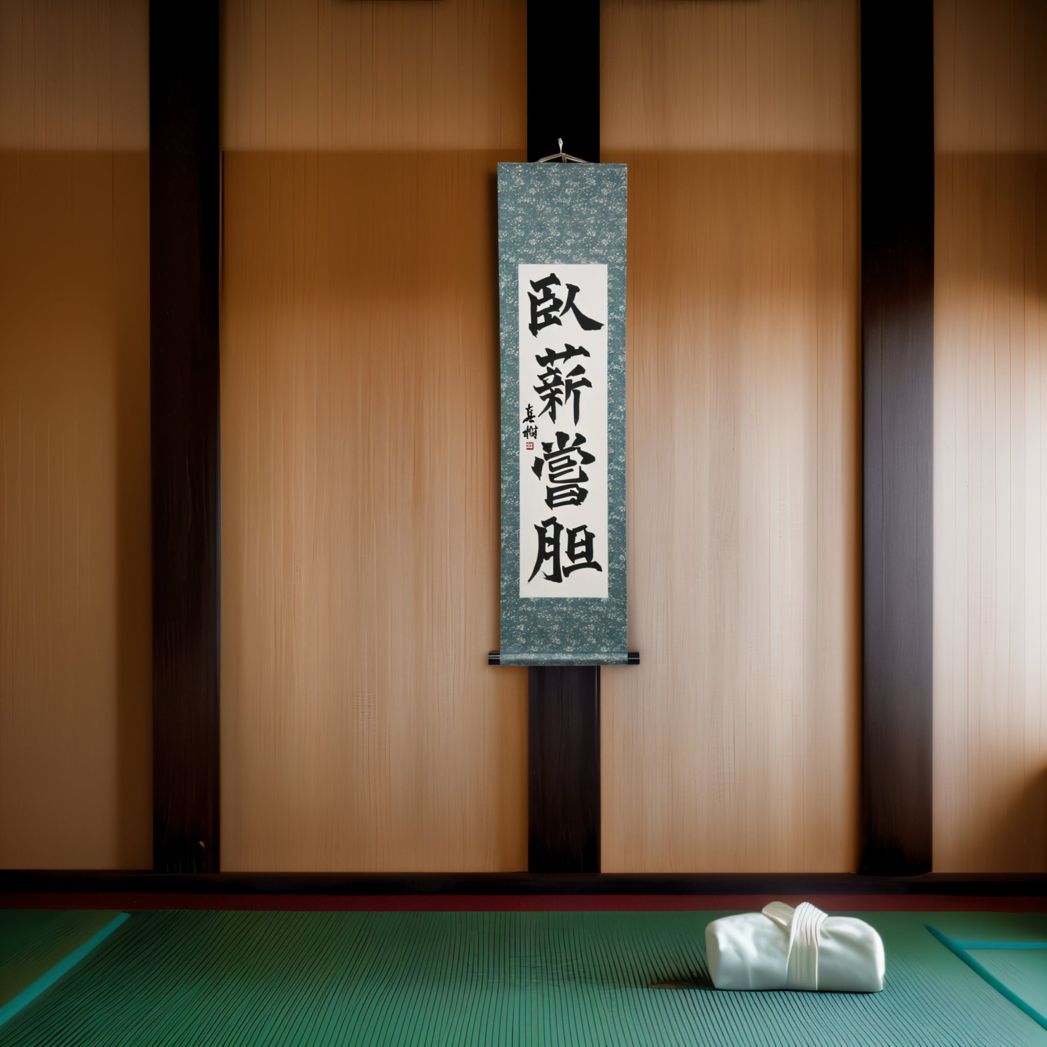 Les mots proviennent d'une histoire ancienne d'un samouraï qui a enduré des années de difficultés, se préparant pour le jour où il se lèverait plus fort. Signifiant littéralement « dormir sur du bois de chauffage et goûter la bile amère », cela enseigne que la véritable force ne s'acquiert pas par le confort, mais se forge à travers l'adversité.